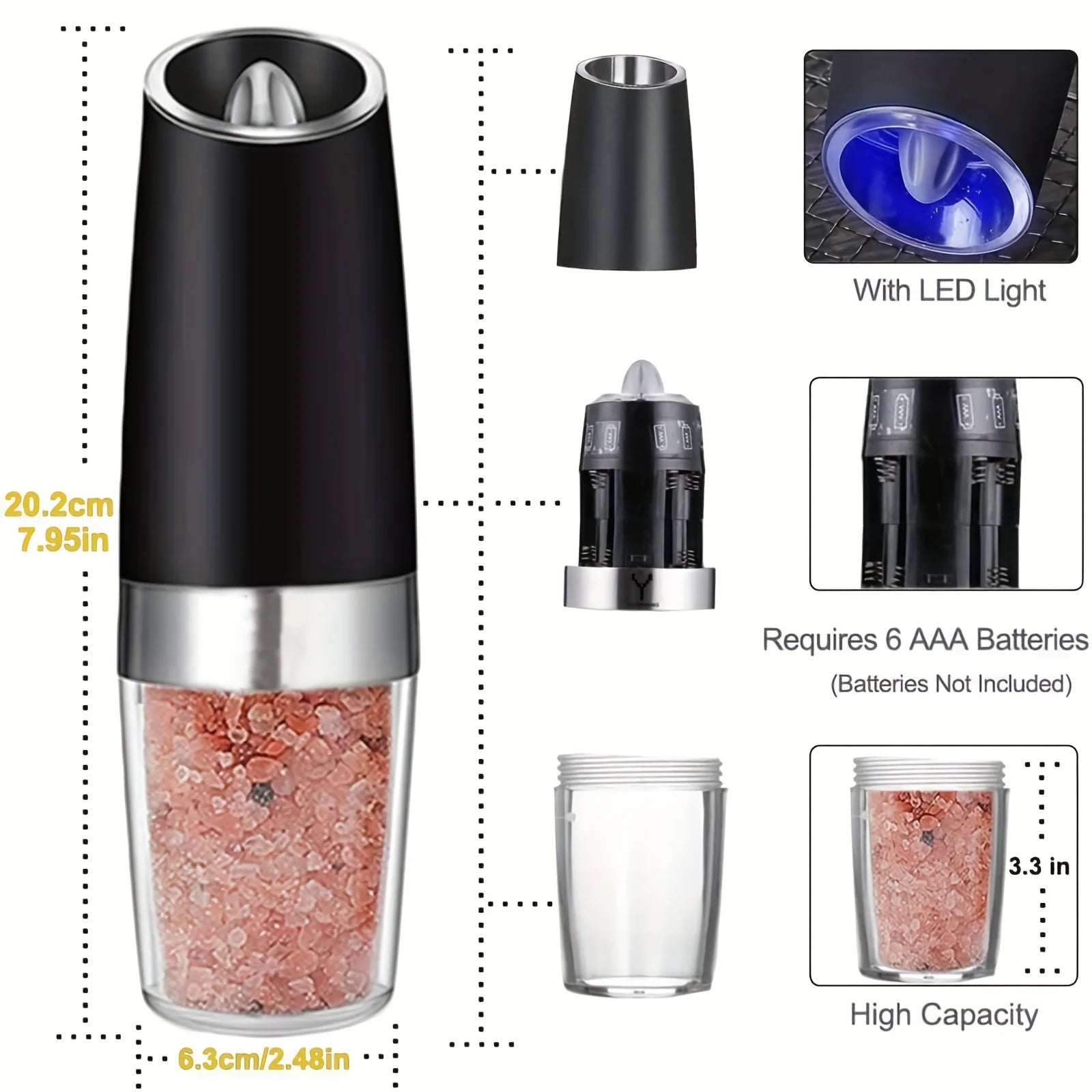 2-piece Battery Powered Grinder for Salt and Pepper