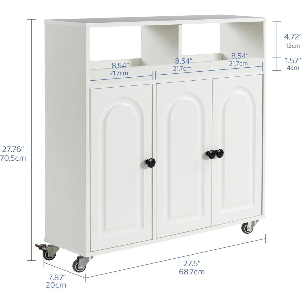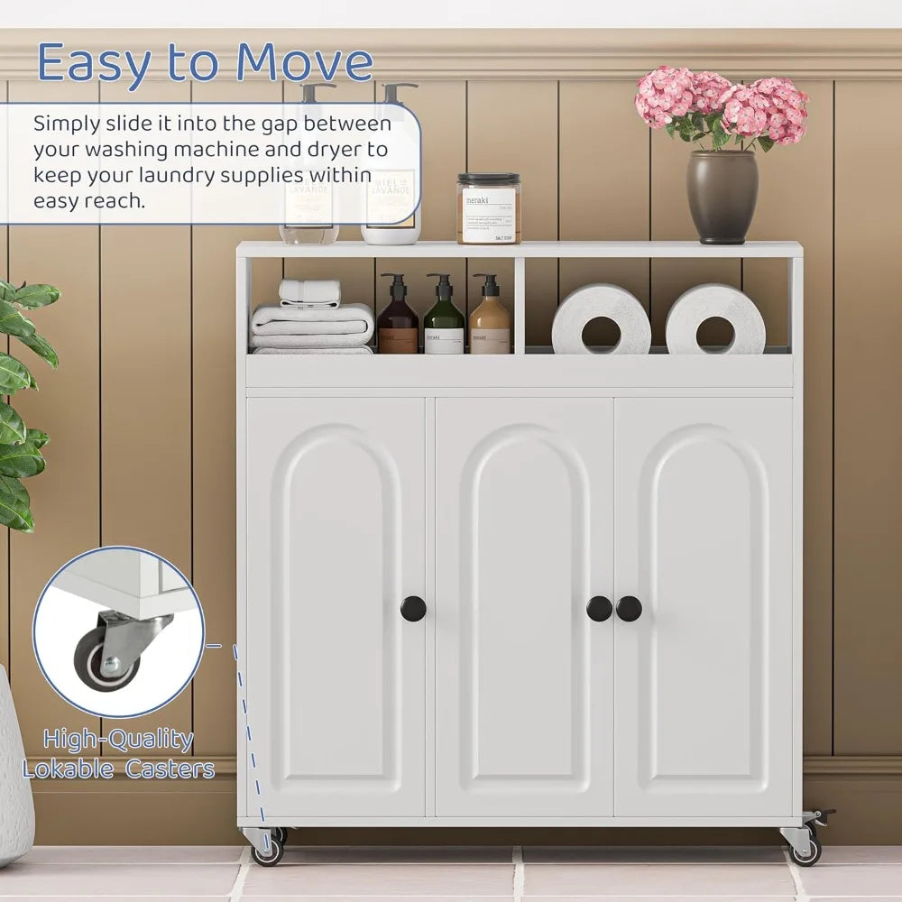 27.7 Inch Tall Rolling Bathroom Storage Cart with 3 Doors