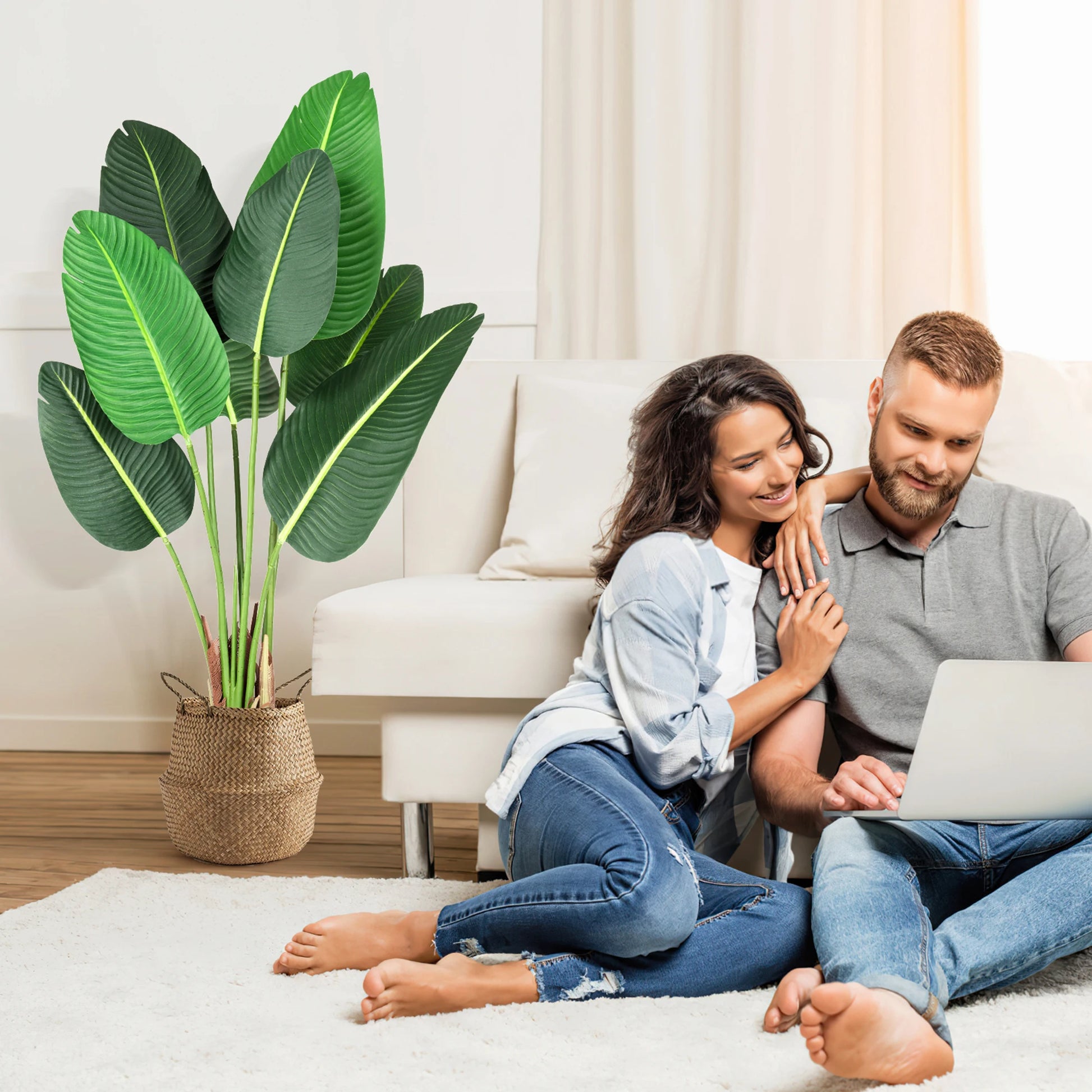 4Ft Aritificial Bird of Paradise Plant Fake Tropical Palm Tree with 8 Trunks Artificial Banana Leaf for Indoor Outdoor Decor