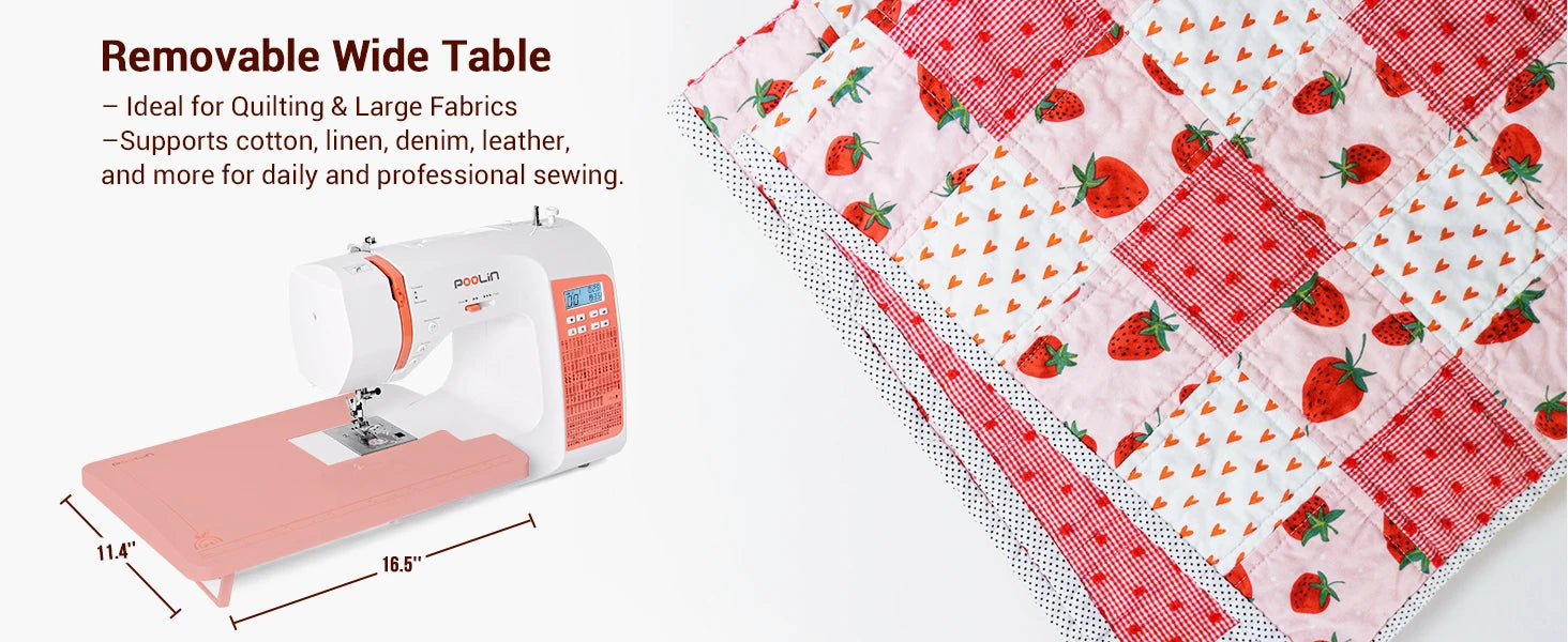 POOLIN EOC02 Computerized Sewing Machine, Heavy Duty Home Use with 200 Built-in Stitches & Portable Handle