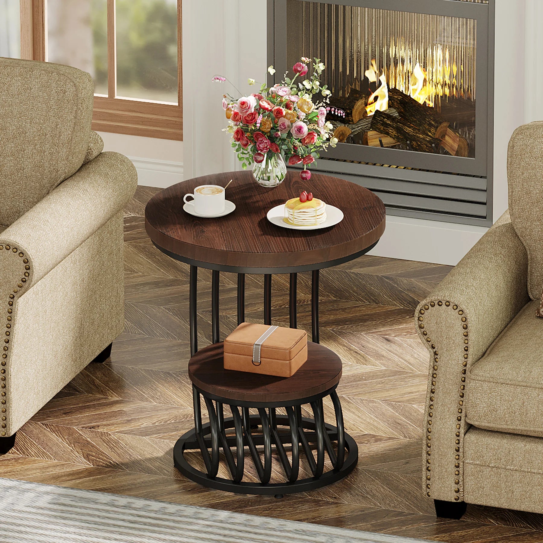 Tribesigns Gold Round End Table: 2 Tiers Faux Marble